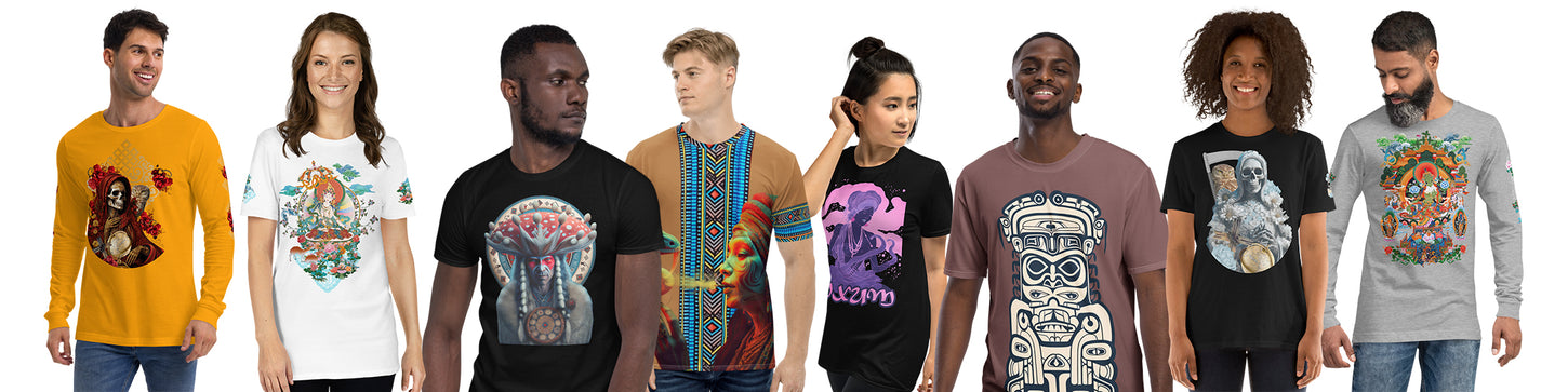 Embrace your journey of self-expression with our tee, a garment of spiritual significance and unmatched comfort. This shirt doesn't just drape your body; it's a canvas of cultural narratives and cosmic rhythms that captures your unique spirit. Our tee is...